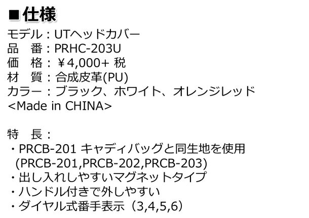 【2020年モデル】【プロギア】SPORTS MODEL UTILITY HEAD COVER PRHC-203UUT用ヘッドカバー 出し入れしやすいマグネットタイプ ハンドル付で外しやすいダイヤル式番手表示(No.3,4,5,6)ユーティリティースポーツモデル【PRGR】